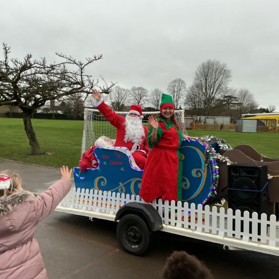 This morning began with an unexpected and magical surprise for the entire school. As pupils assembled on the playground, the gentle sound of sleigh bells echoed through the air, growing louder by the moment. Anticipation built as Father Christmas appeared, arriving in his sleigh to delighted cheers. Joined by one of his cheerful elves, he danced along to the festive music while greeting everyone on the playground. After spreading plenty of Christmas spirit, they waved goodbye and set off once more for Lapland, where preparations for the big day continue.