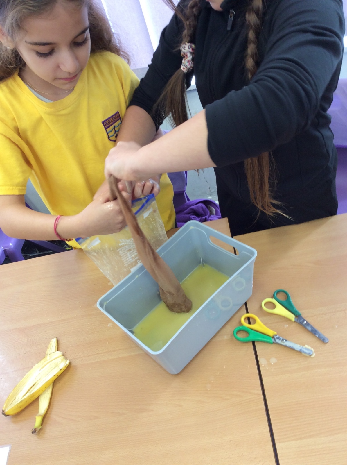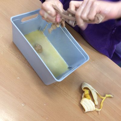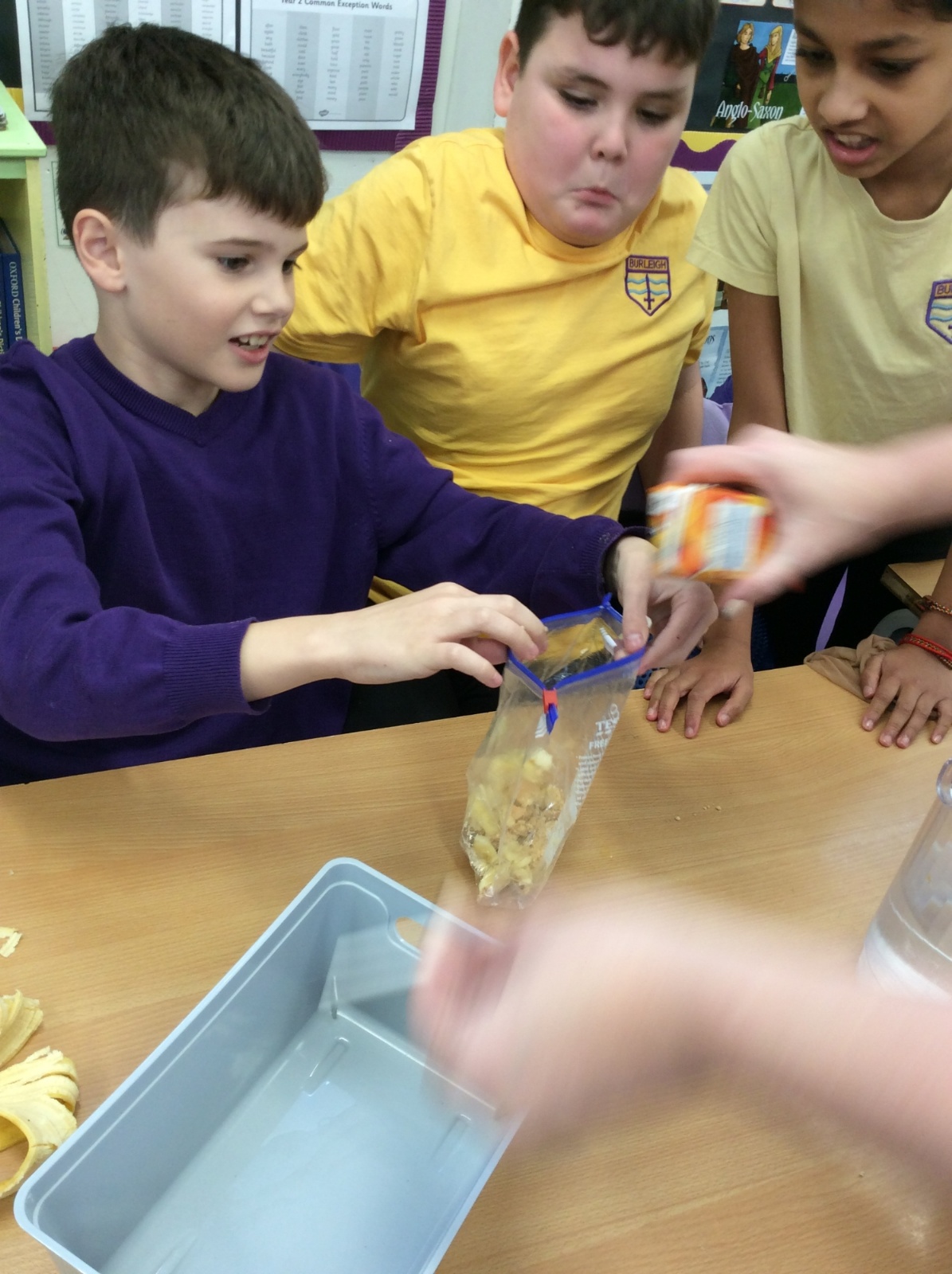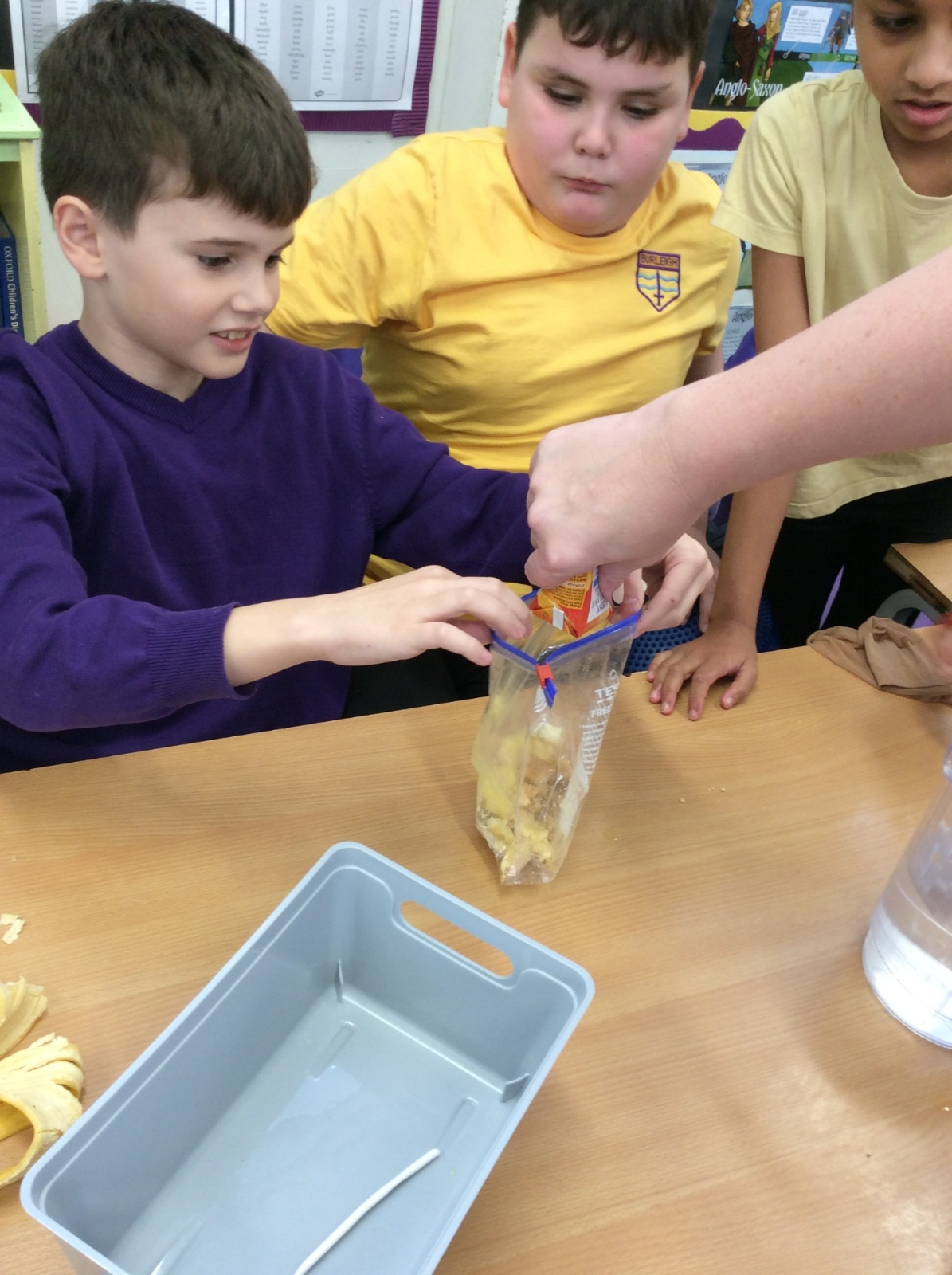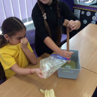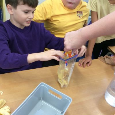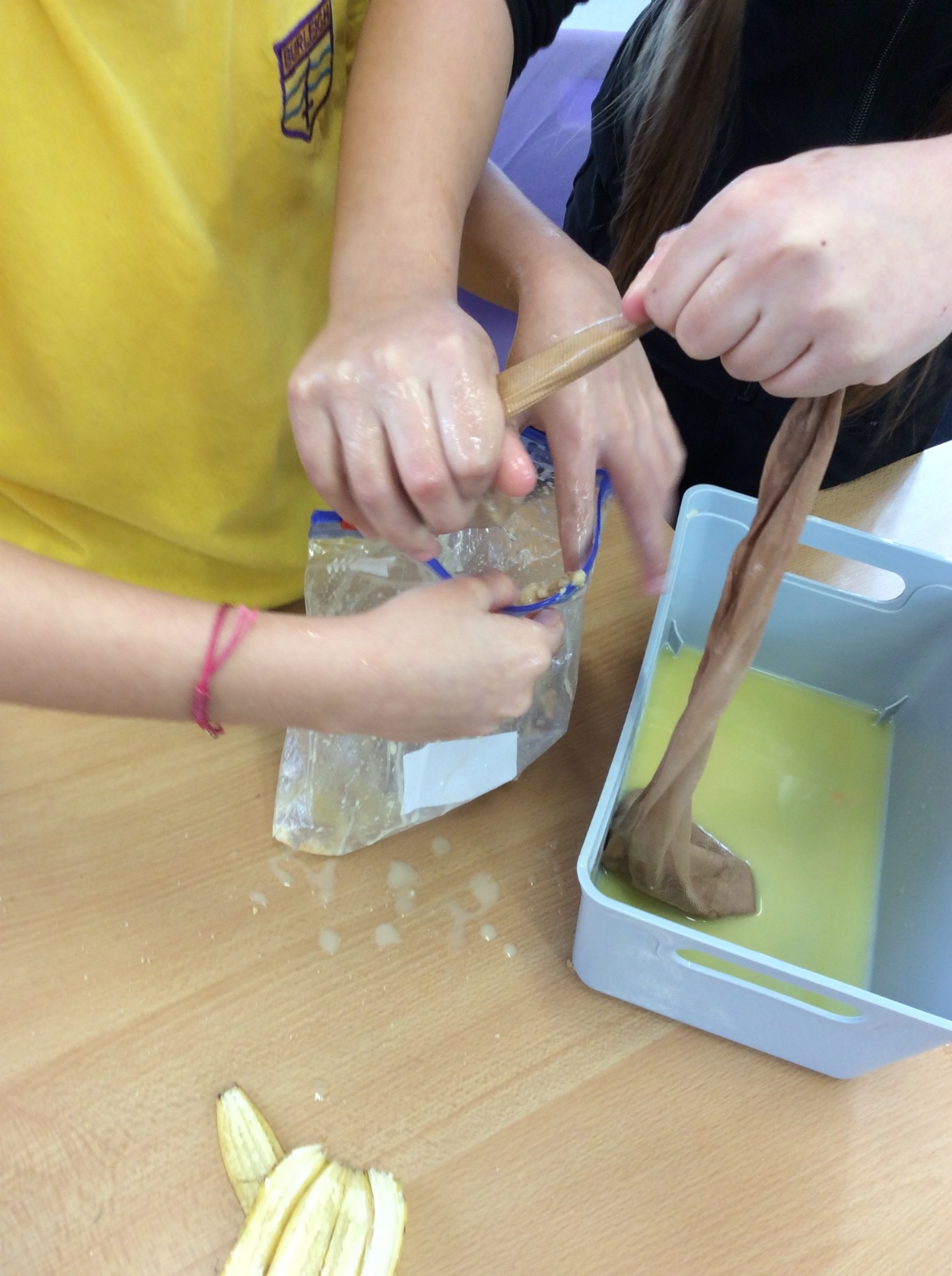 Apologies if your children left school feeling a little bit queasy yesterday – for Science we recreated what happens to food in the body using digestives, bananas, ziplock bags, orange juice, water and a pop sock.