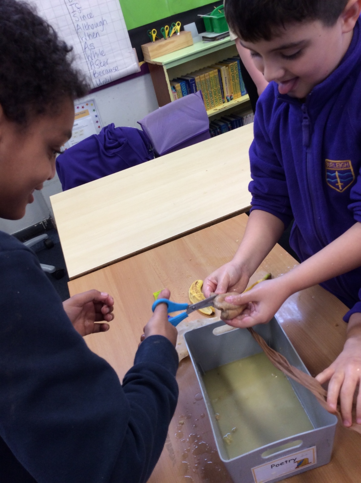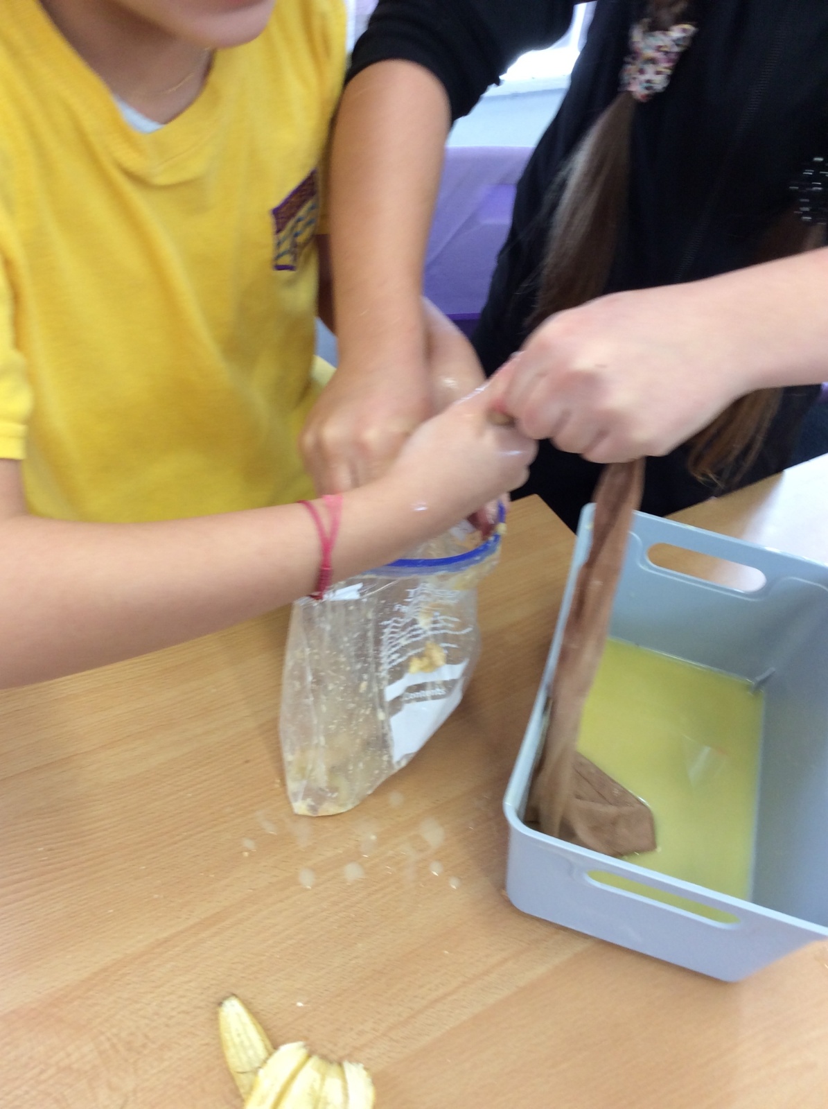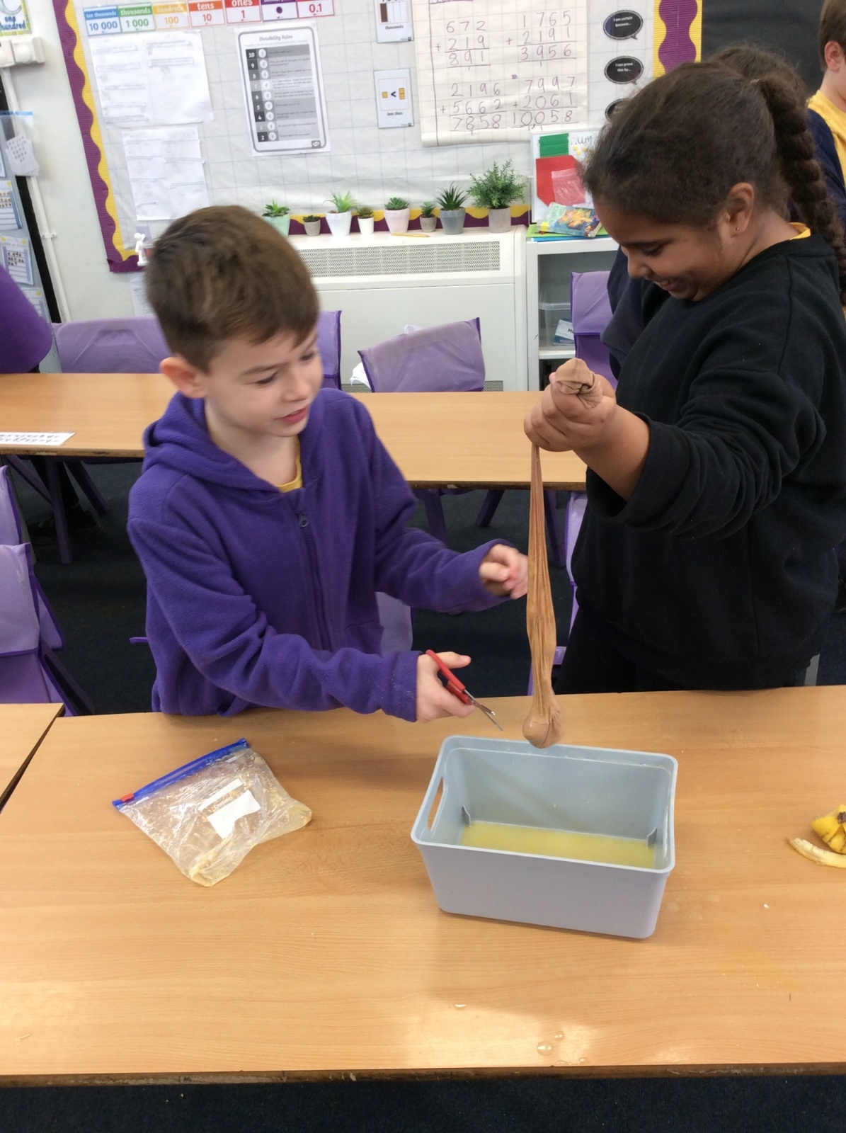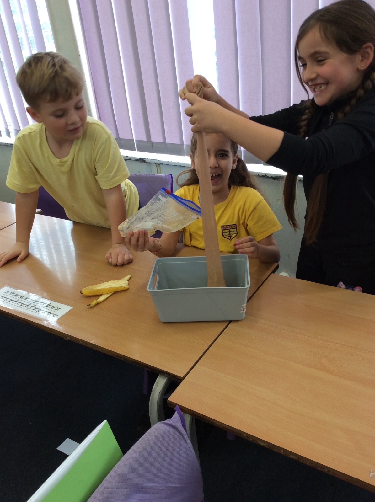 Apologies if your children left school feeling a little bit queasy yesterday – for Science we recreated what happens to food in the body using digestives, bananas, ziplock bags, orange juice, water and a pop sock.