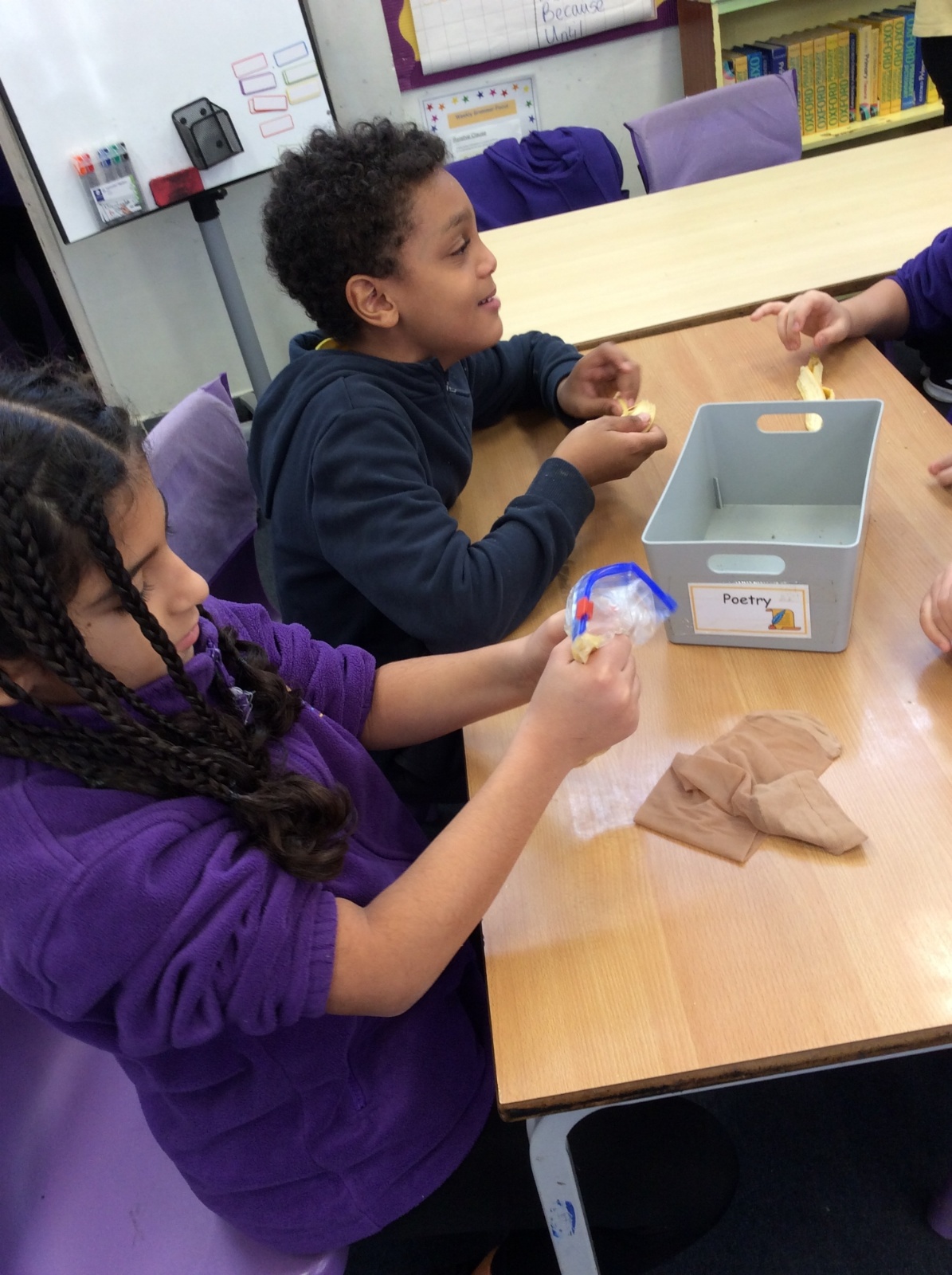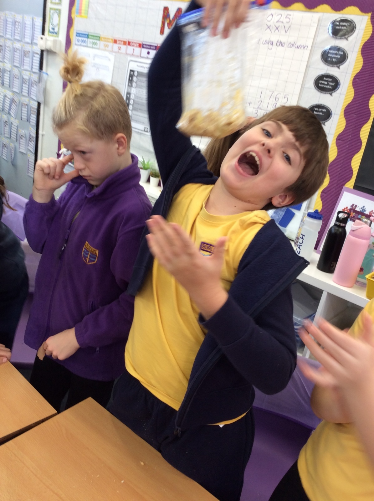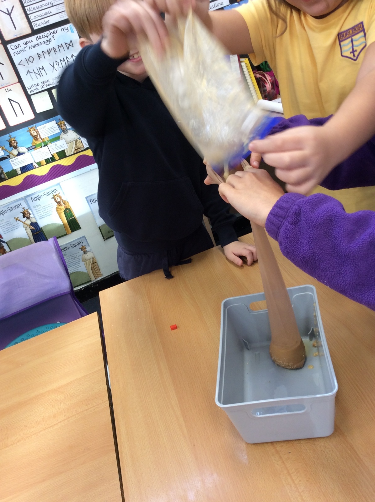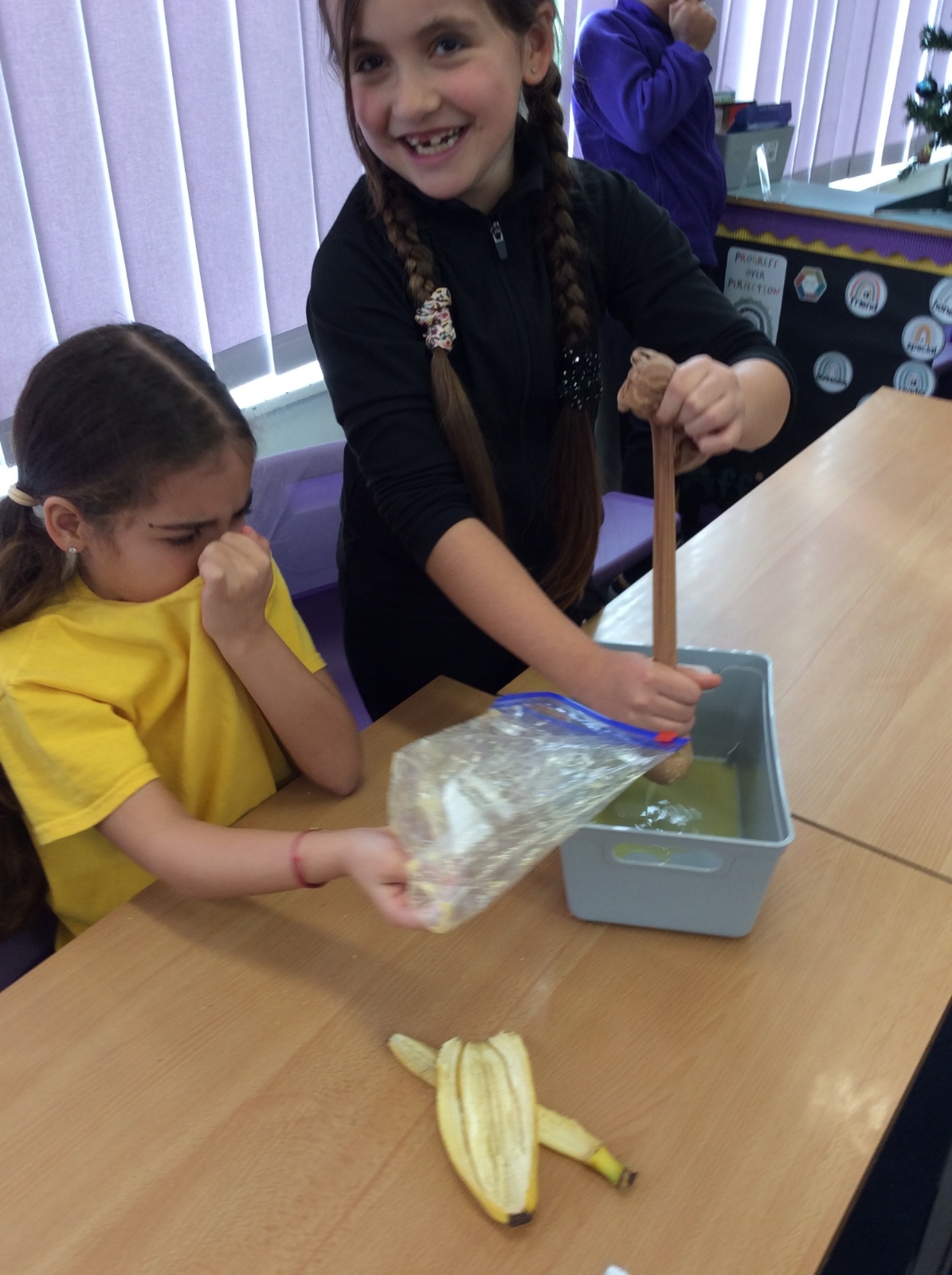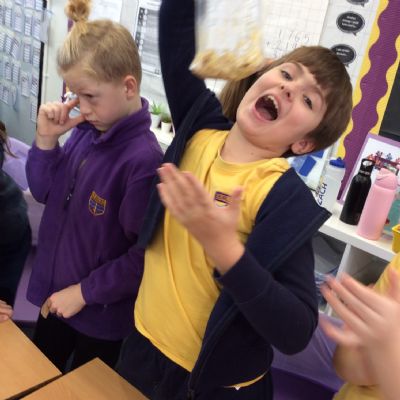 Apologies if your children left school feeling a little bit queasy yesterday – for Science we recreated what happens to food in the body using digestives, bananas, ziplock bags, orange juice, water and a pop sock.