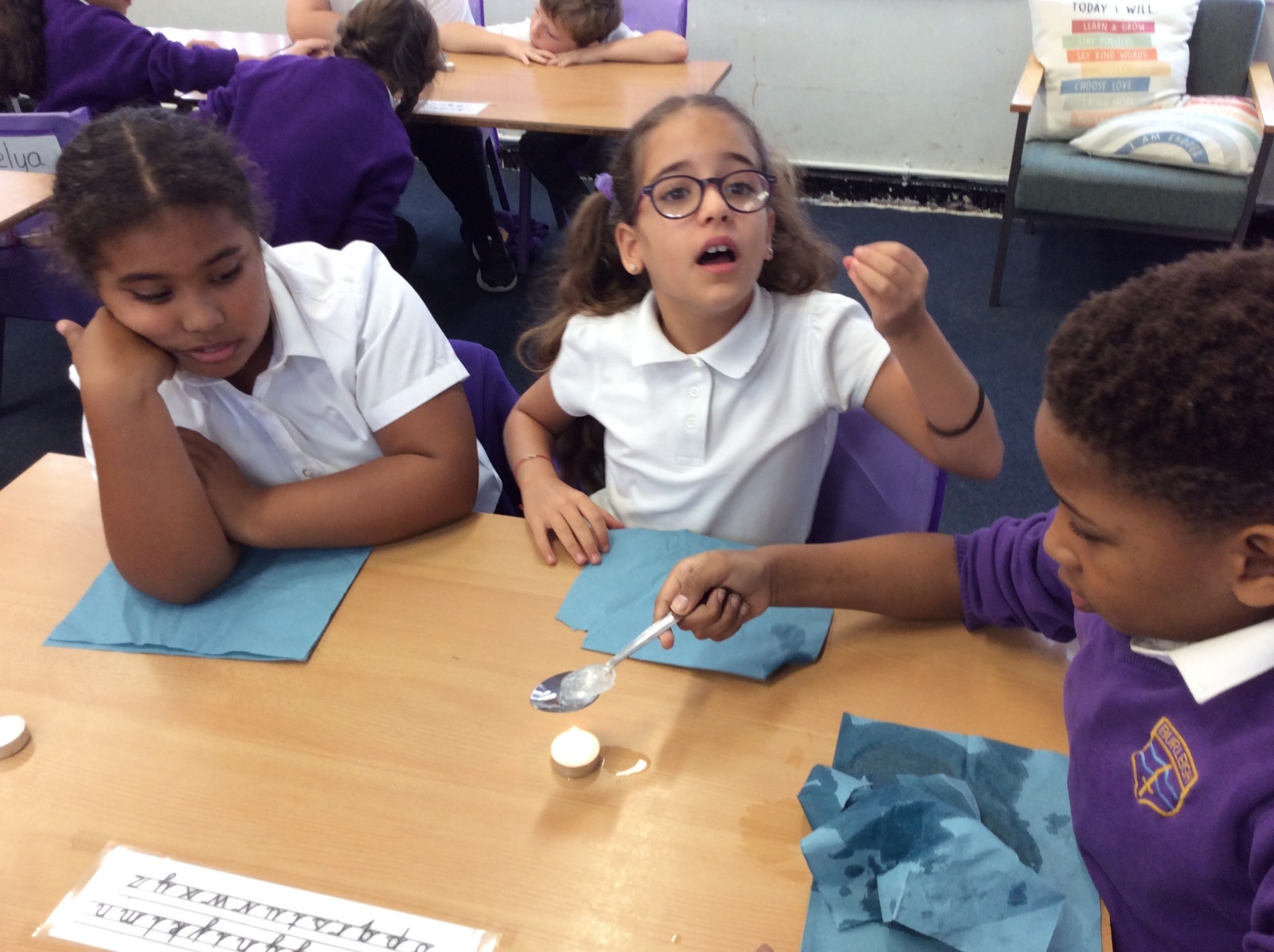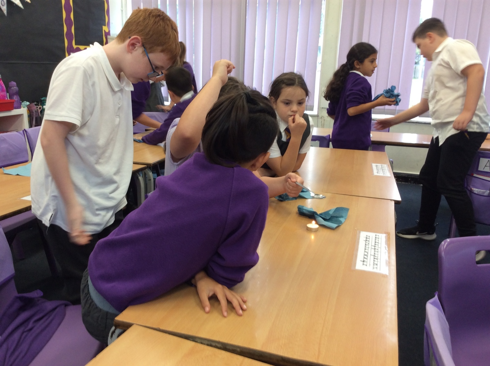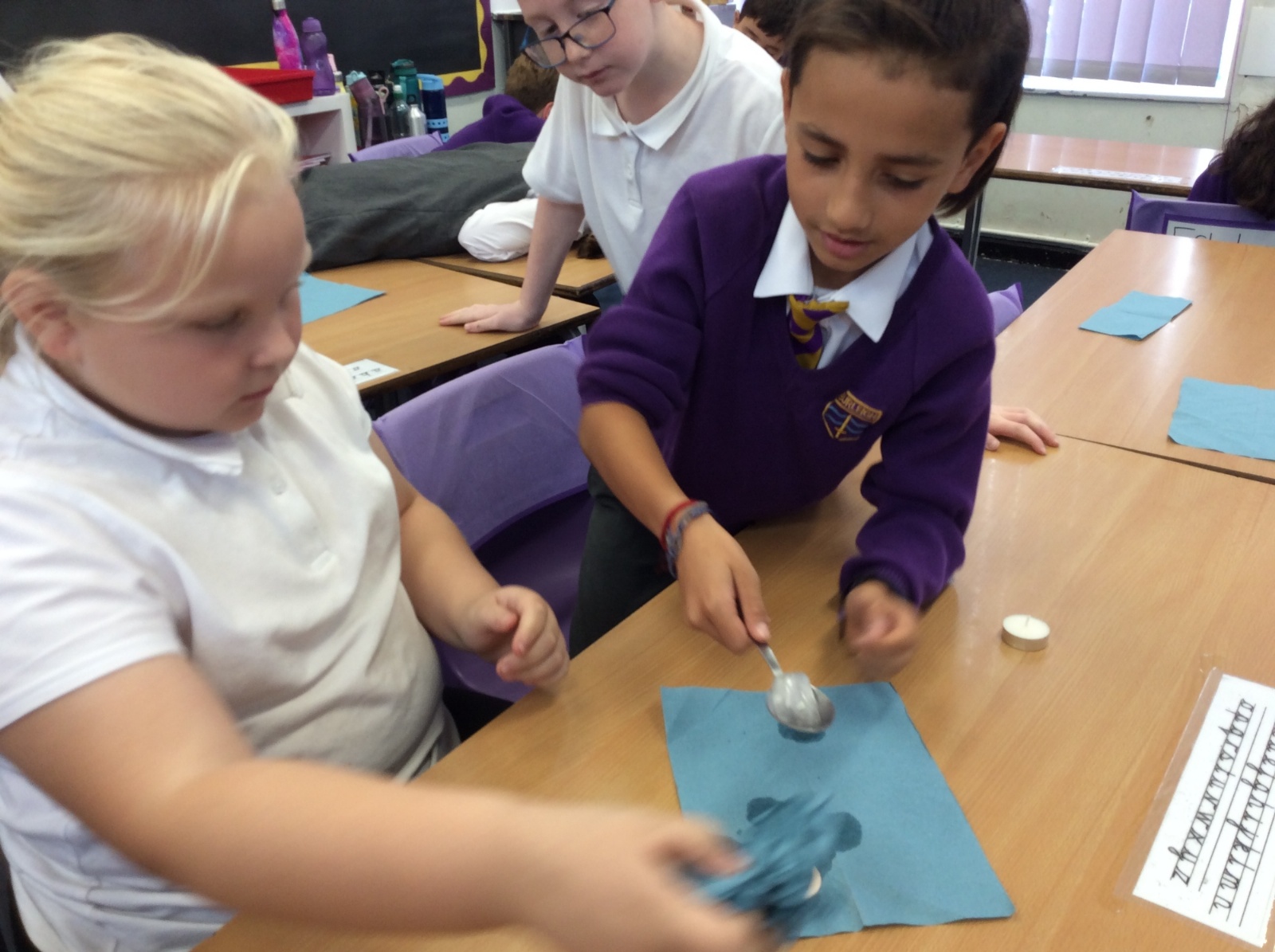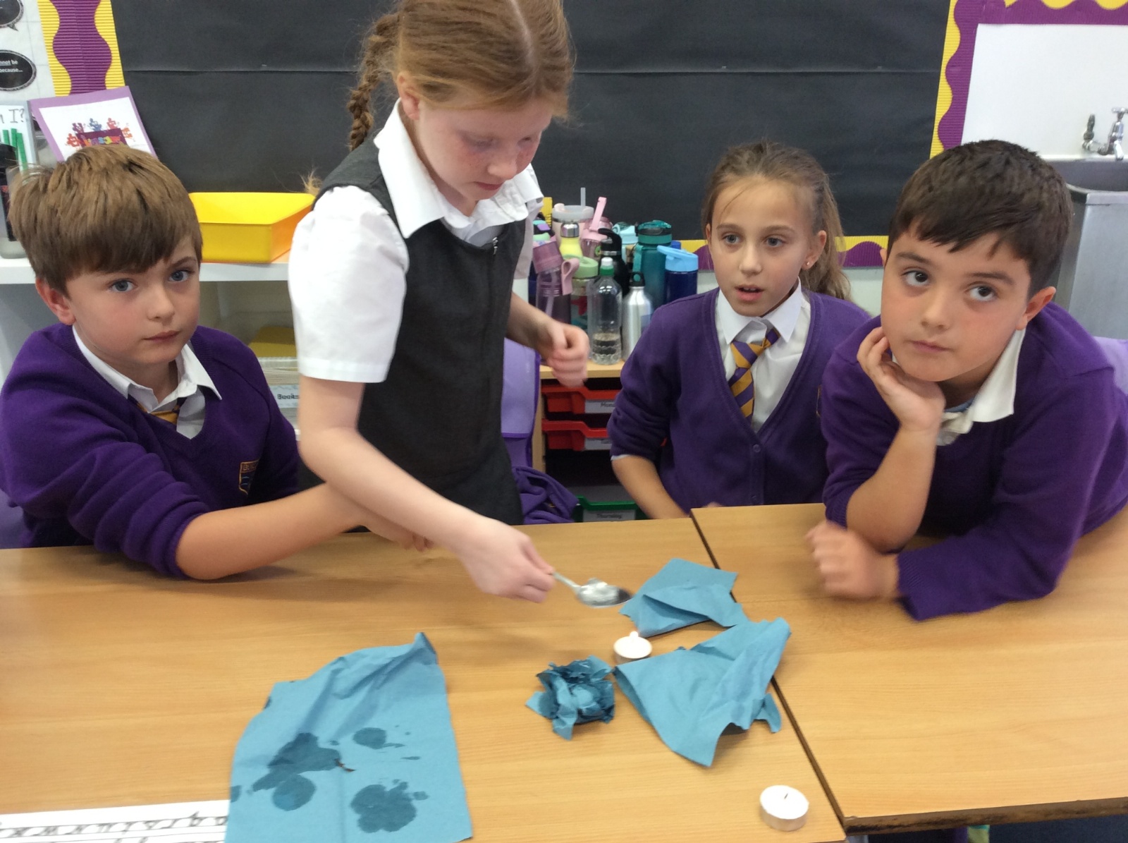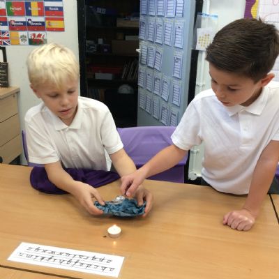 26th September - Today in Science, Year 4 tested out the impact that heat has on melting ice. Each group were given a tealight, a spoon and an ice cube. They timed how long it took to melt the ice cube over the tealight while we also times how long it took an ice cube to melt without heat applied. All the heated ice cubes melted within 16 minutes whereas the unheated ice cube had still not completely melted 51 minutes later! We learned that applying heat to some solids can accelerate the change in state to liquid form.