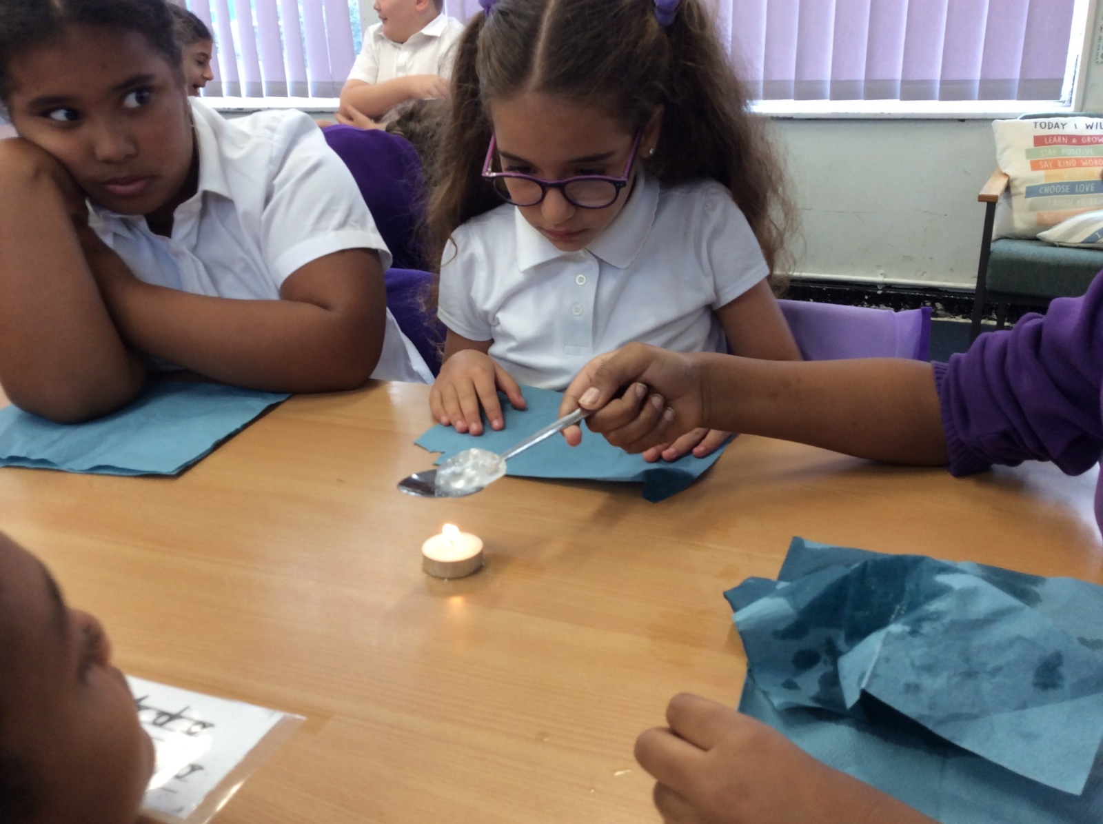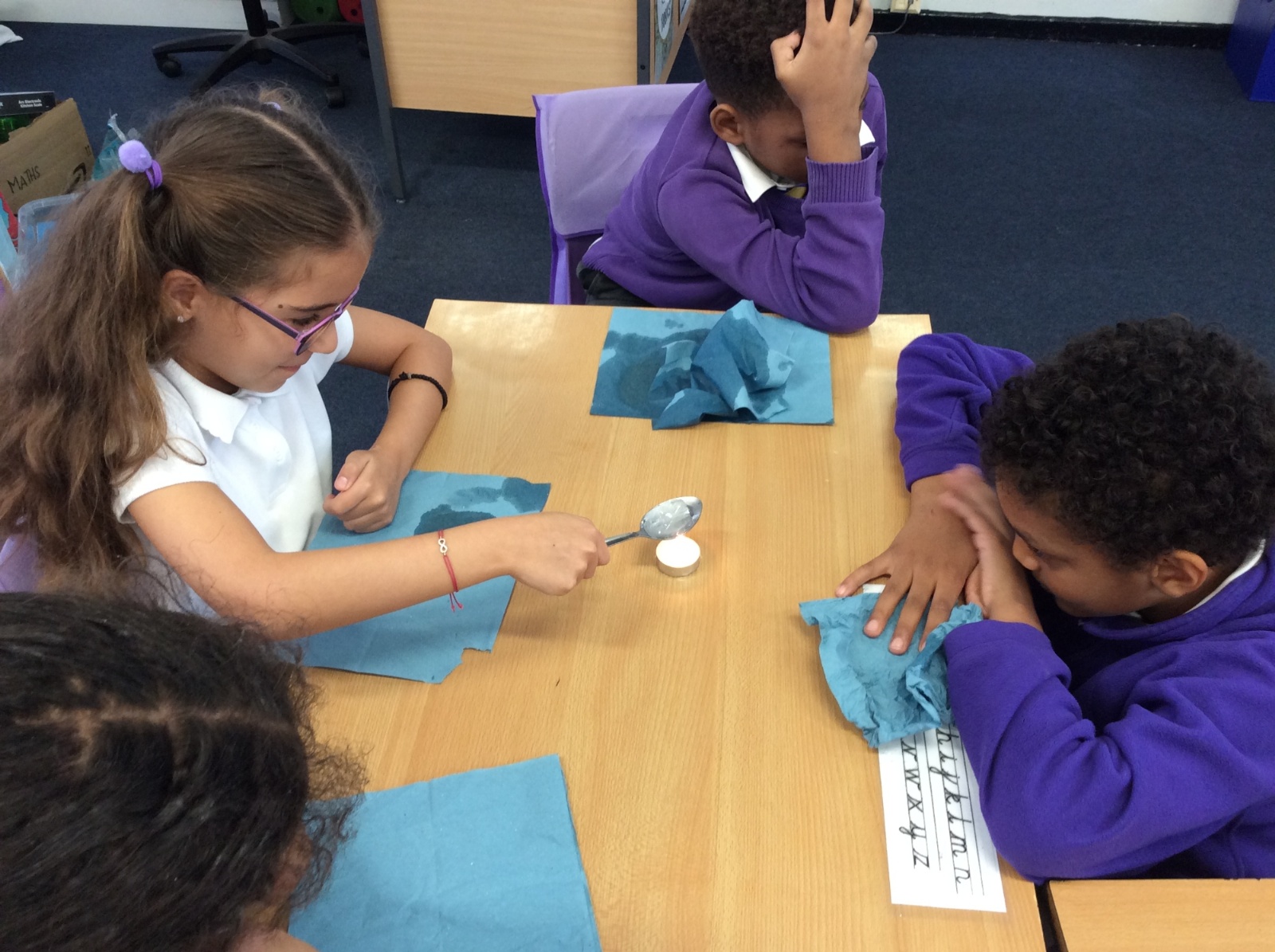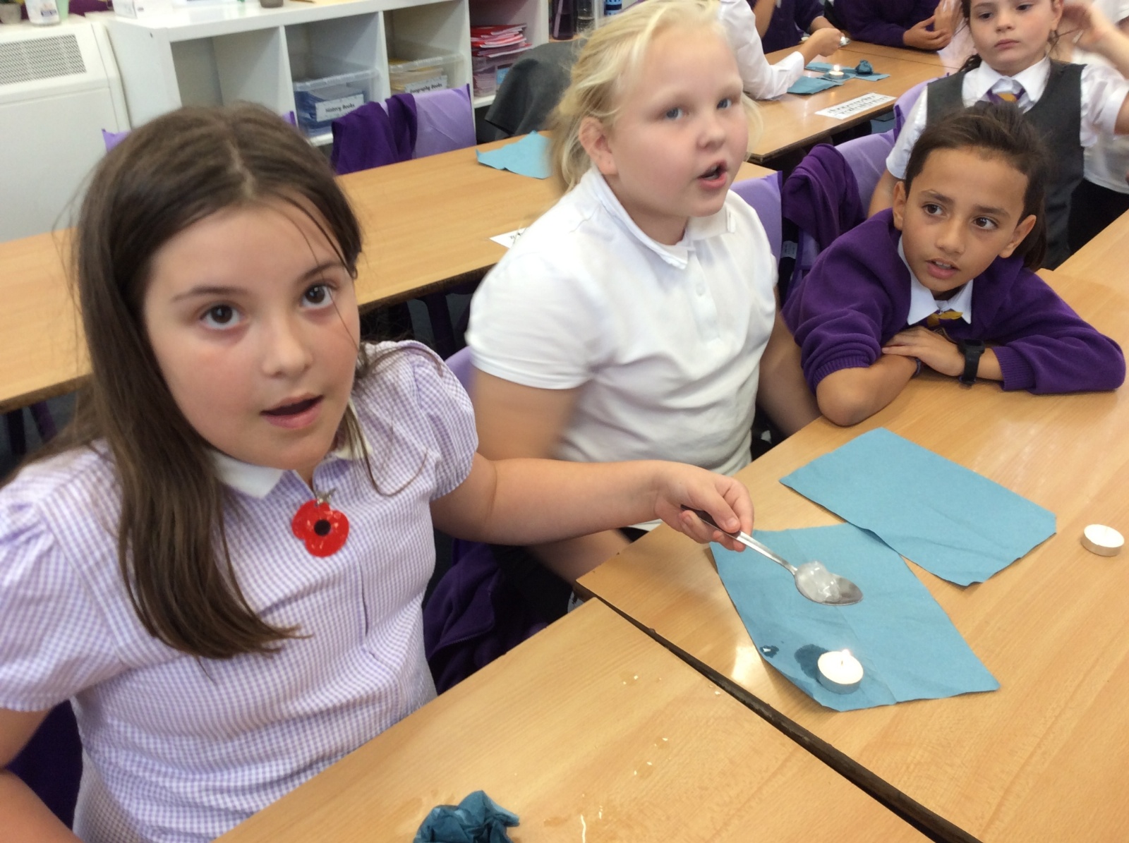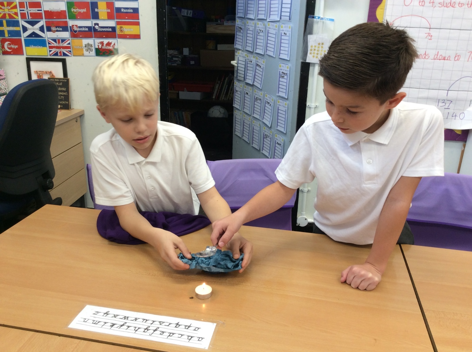 26th September - Today in Science, Year 4 tested out the impact that heat has on melting ice. Each group were given a tealight, a spoon and an ice cube. They timed how long it took to melt the ice cube over the tealight while we also times how long it took an ice cube to melt without heat applied. All the heated ice cubes melted within 16 minutes whereas the unheated ice cube had still not completely melted 51 minutes later! We learned that applying heat to some solids can accelerate the change in state to liquid form.