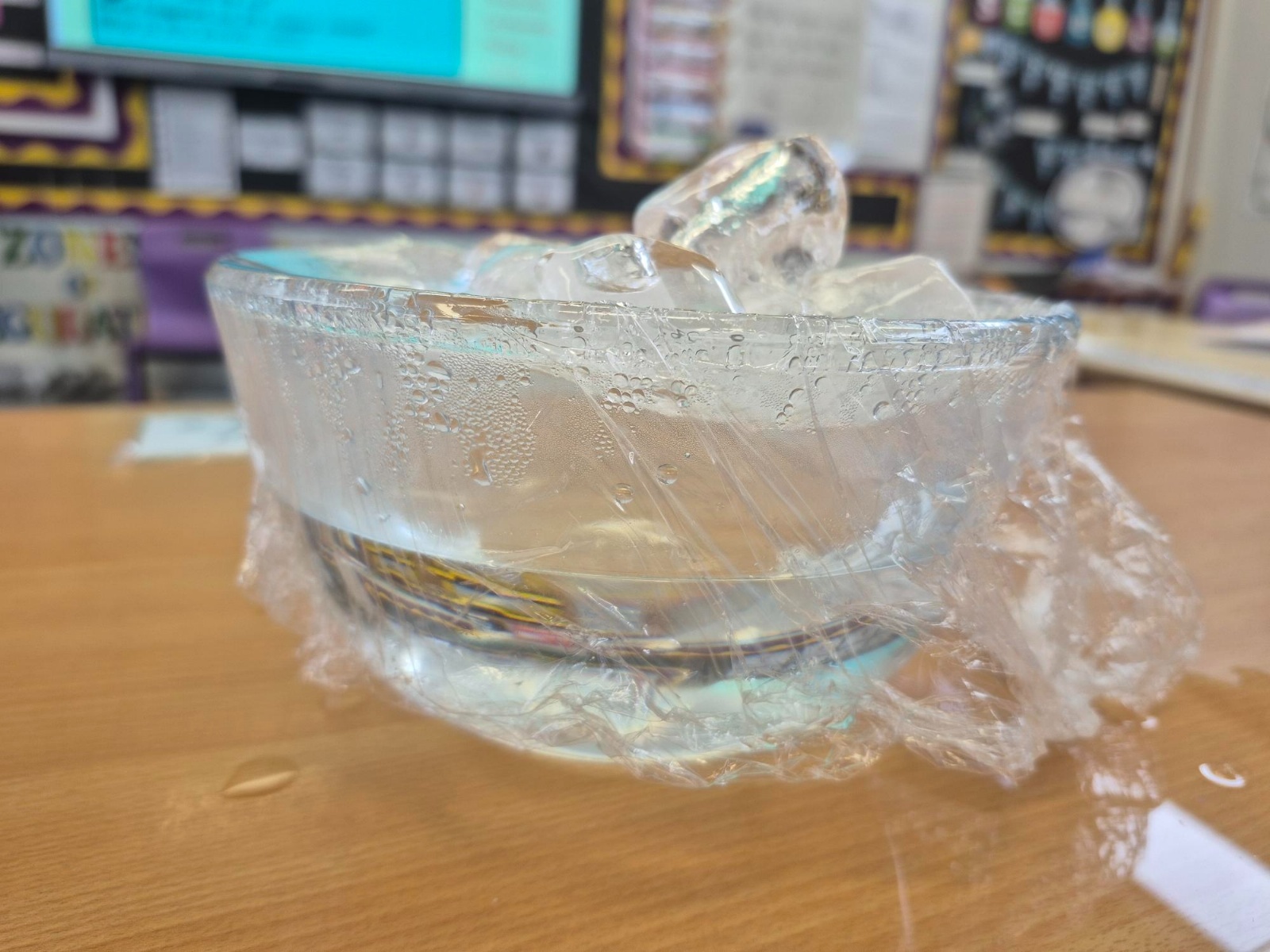This afternoon in Science, Year 4 watched evaporation and condensation in action! We first heated water using a kettle. We could see steam rising from the kettle - this was the water (a liquid) turning into water vapour (a gas). This is called EVAPORATION. After that, we poured the heated water into a glass bowl and covered it in cling film. We placed ice cubes on top of the cling film to cool the water vapour down. As the vapour cooled down, the gas turned back into a liquid and we observed water droplets gather on the glass bowl. This process is called CONDENSATION.