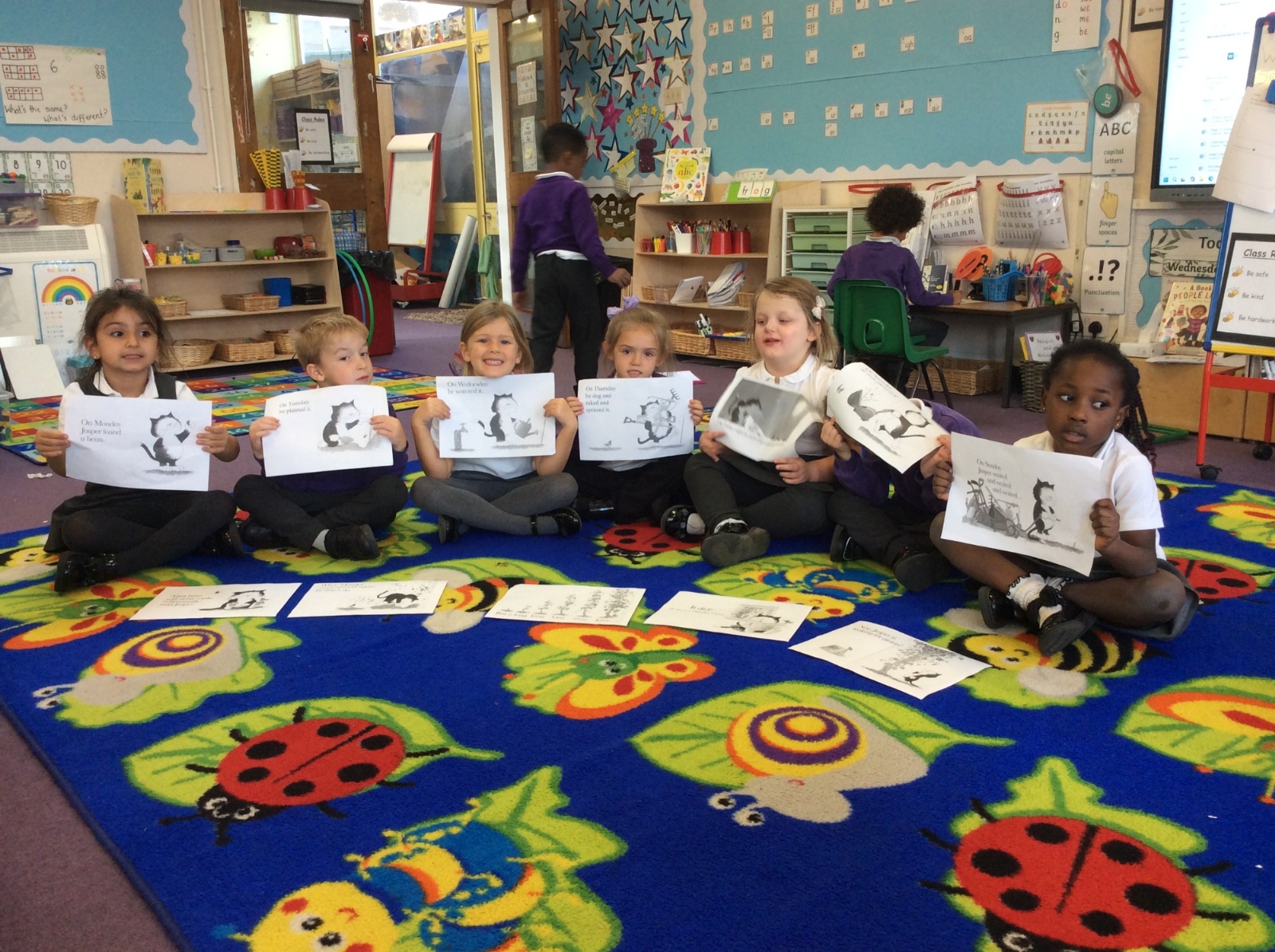 We have been reading Jasper's Beanstalk.  We have labelled plants, ordered the story and written oue own set of instructions!