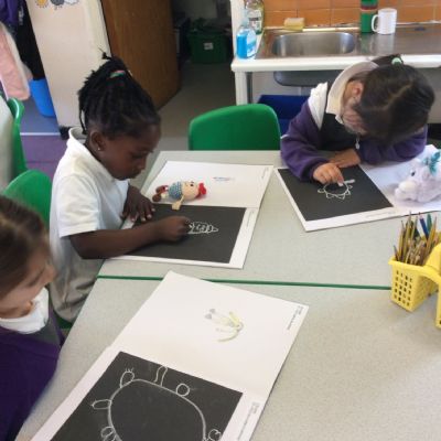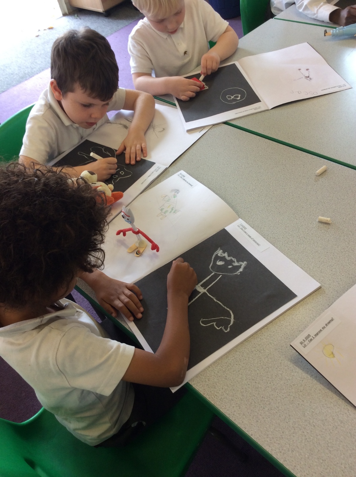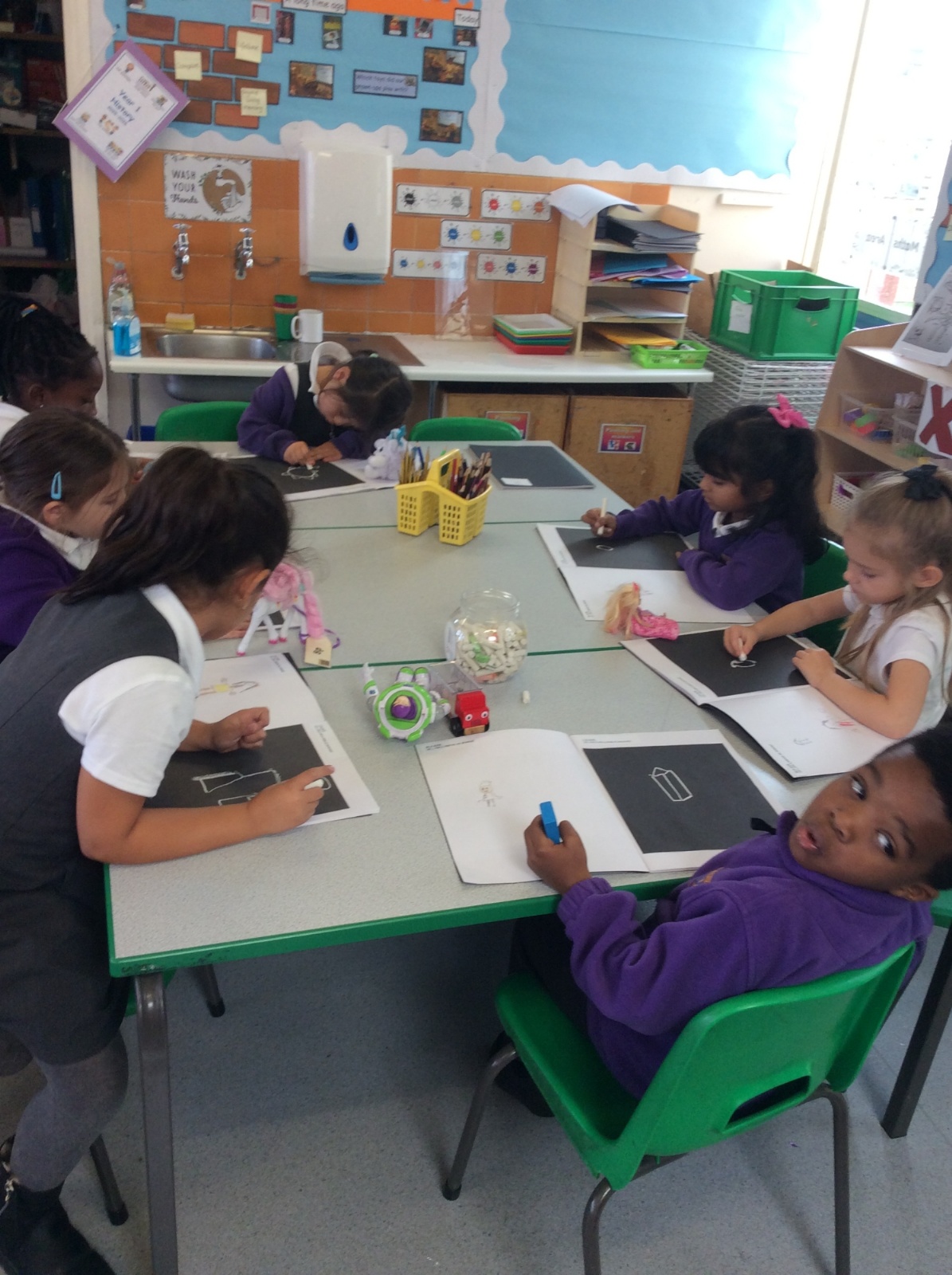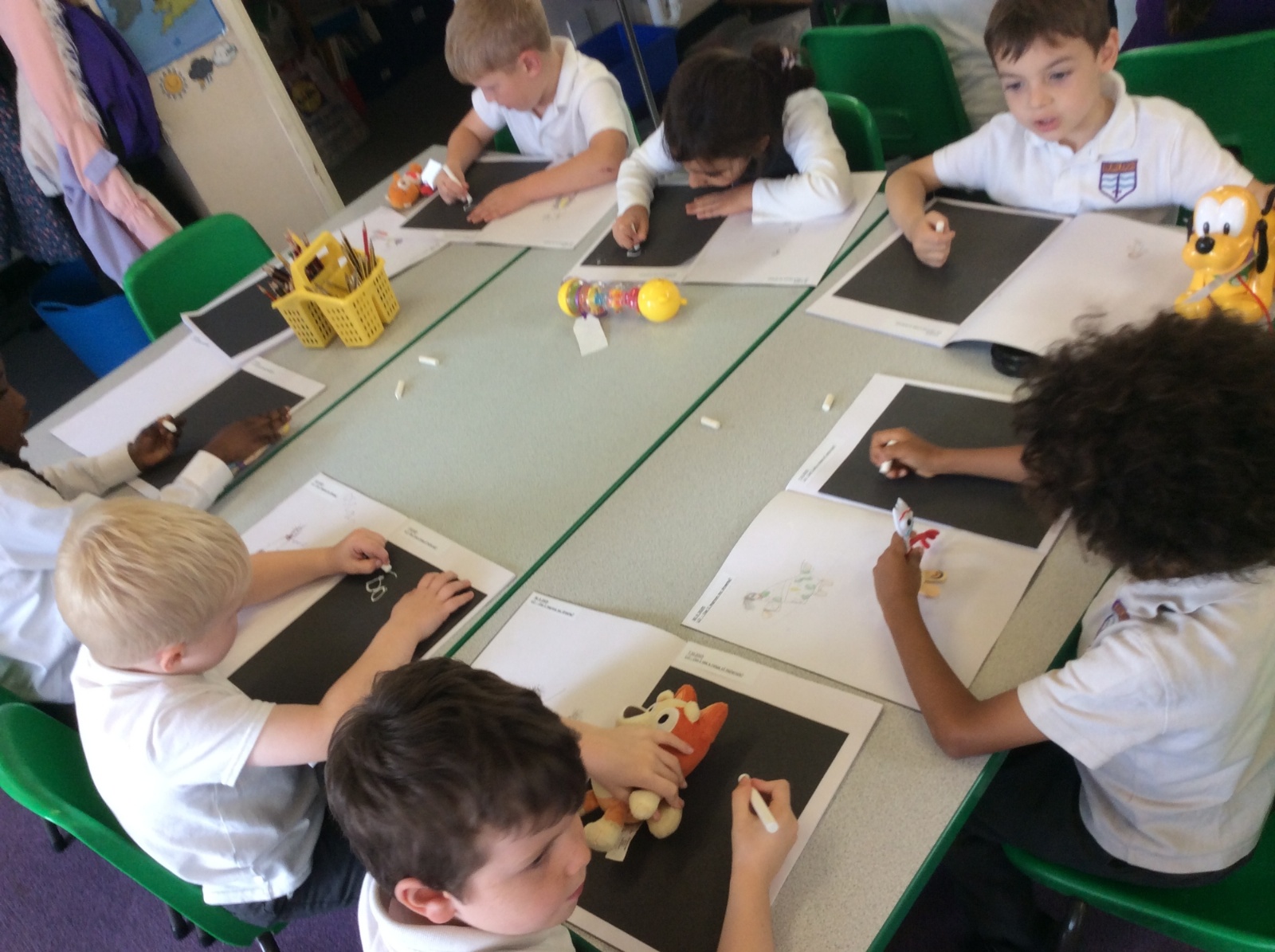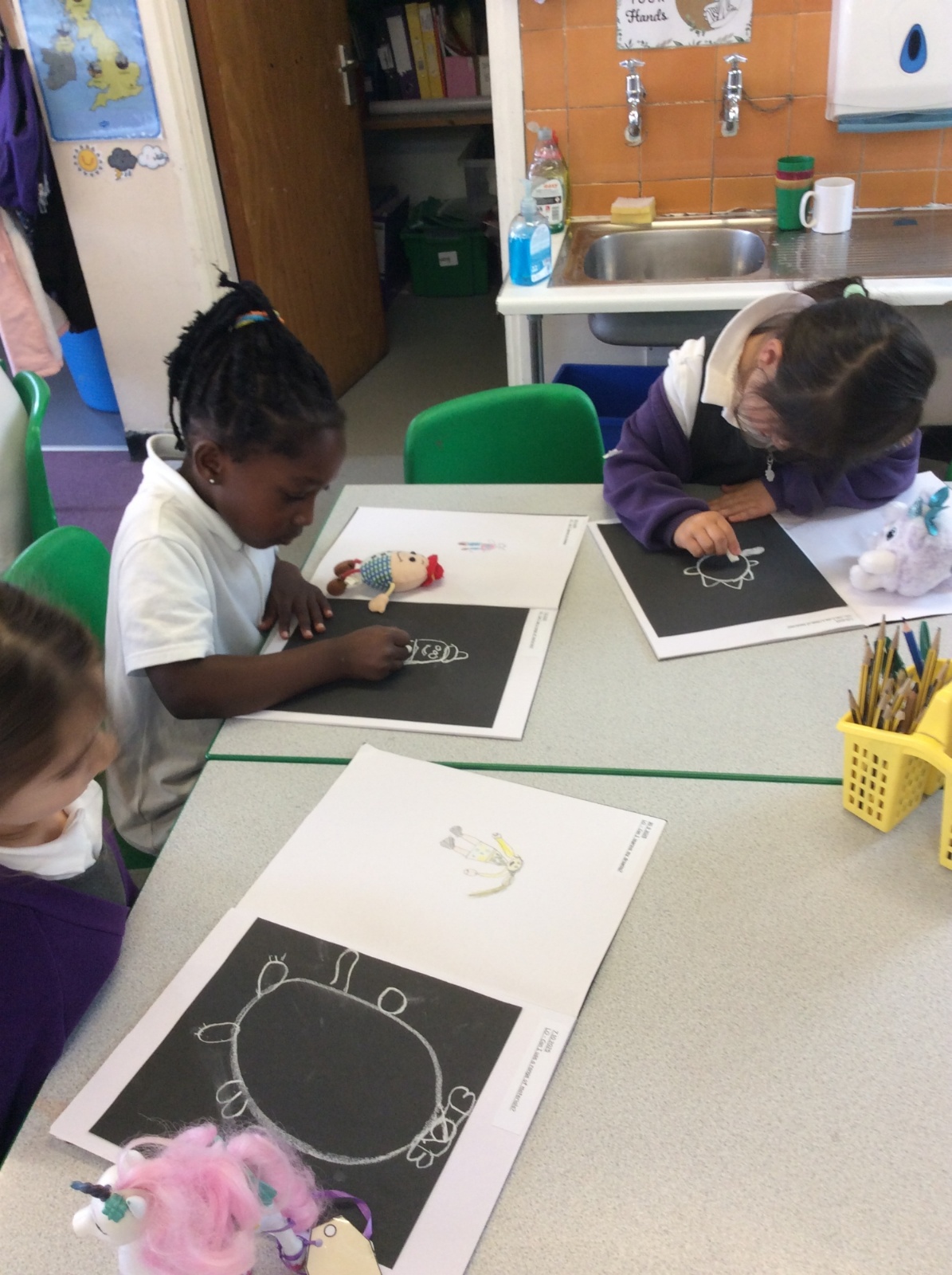 As part of our 'Looking at Play' topic, we have been learning to draw toys. We have observed the toys closely, looking at pattern and shape – We even tried drawing with chalk! We have aimed to improve our drawings each time.