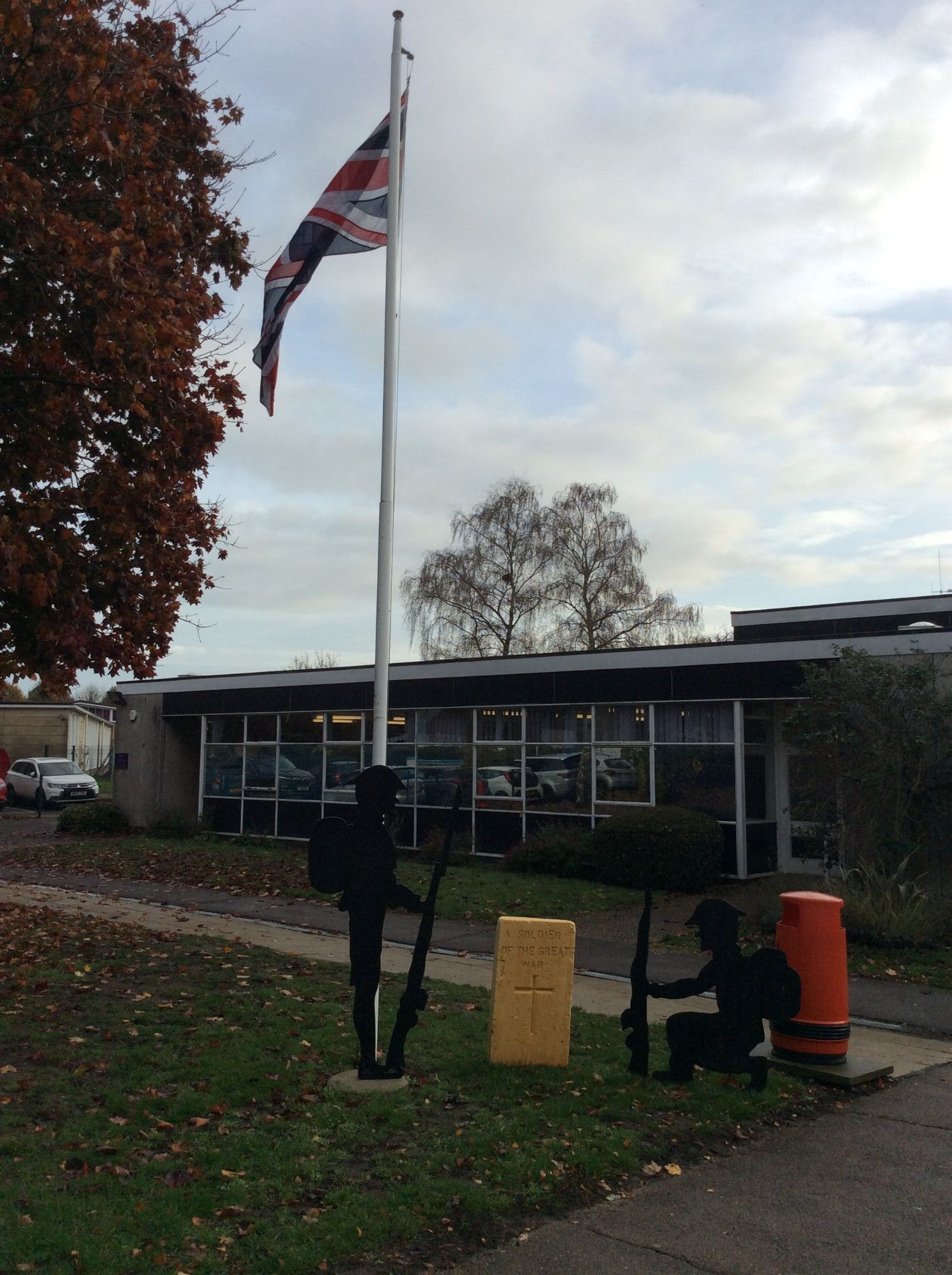 The school commemorated Remembrance Day by gathering at the Cenotaph. Each class created a wreath of poppies and placed it with care. We then observed a respectful two-minute silence together.